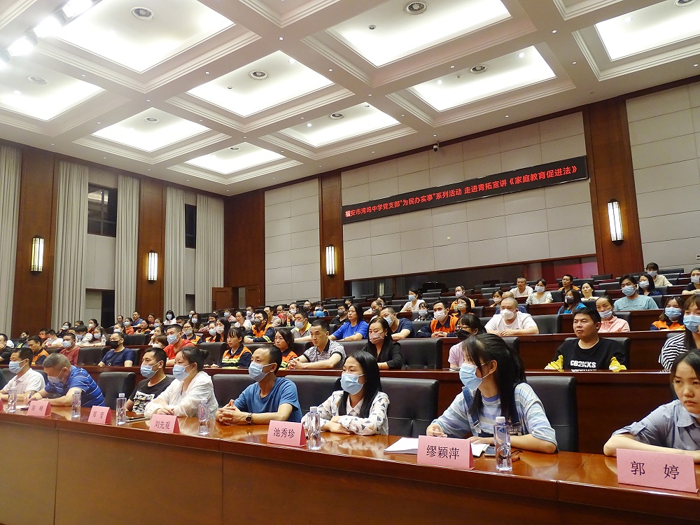 6月1日,福安市湾坞中学党支部“为民办实事”系列活动之走进青拓宣讲《家庭教育促进法》在青拓集团有限公司报告厅举行,宁德市人大代表兼福安市家庭教育指导协会副会长缪未雨,福安市湾坞镇党委宣传委员陈德辉,福安市湾坞中学校长徐武,福建怀行律师事务所法律顾问林斌,青拓集团人力资源部部长刘永清及89名青拓职工家长参加了此次活动。