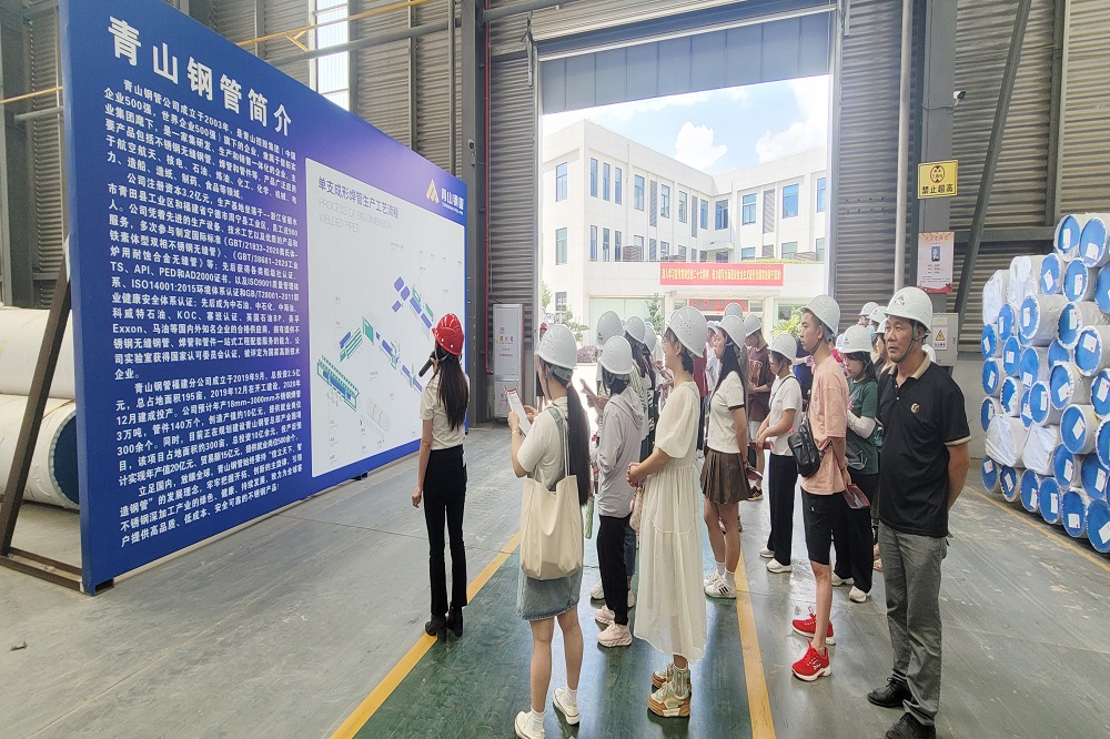 壹号娱乐-com钢管福建分公司的解说员带领大家观看了不锈钢深加工产业园的视频,参观了焊管车间的生产线流程,介绍了公司的基本概况和发展前景。通过实地参观,让毕业生对企业的工作环境和企业文化有了更直观的认识和了解,提升了企业认同感,吸引他们到企业就业。