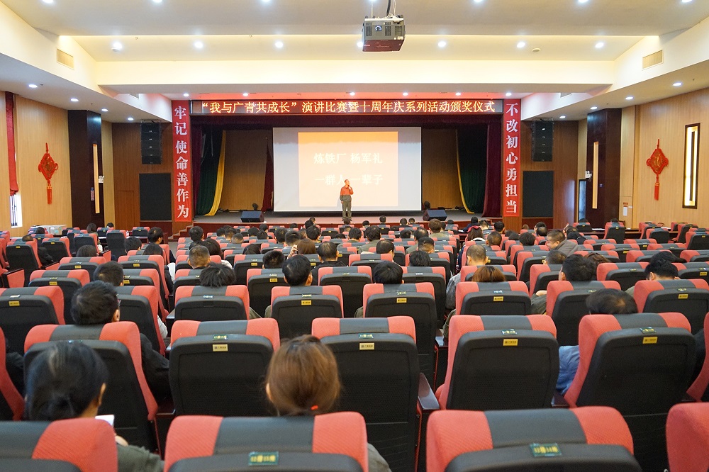 12月26日,广东广青金属科技有限公司举办了“我与广青共成长”主题演讲比赛暨十周年庆系列活动颁奖仪式。公司领导班子、各部门(厂)负责人以及员工代表共200多人观看了比赛。