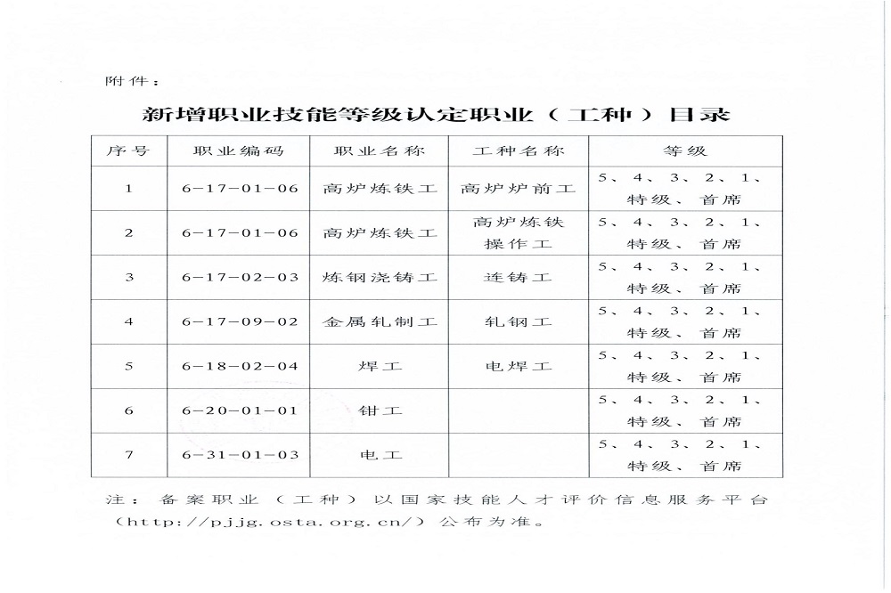 近日,广东广青金属科技有限公司成功获批电焊工、高炉炉前工、高炉炼铁操作工、轧钢工、连铸工五个工种的初级工(5级)、中级工(4级)、高级工(3级)、技师(2级)、高级技师(1级)、特级技师、首席技师七个等级的评价资格,以及电工、钳工的技师(2级)、高级技师(1级)、特级技师、首席技师四个等级的认定资格,新增工种覆盖公司五大厂区以及装备部的主要工种,标志着公司职业技能等级评价迈入“新里程”,进一步完善公司企业技能人才评价体系和高技能人才培育平台。