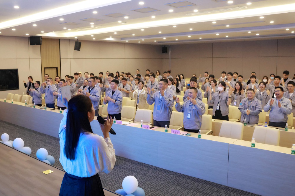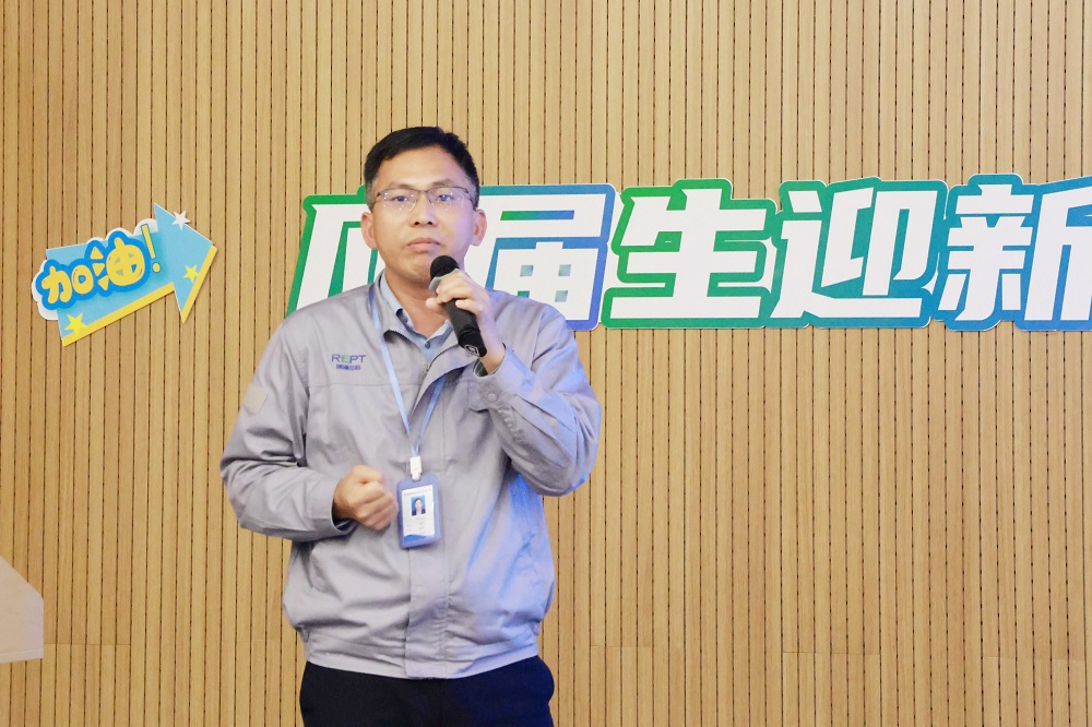 制造中心副总监熊小强对新入职应届生们的到来表示热烈欢迎,并详细介绍了公司的核心价值观、使命愿景和发展历程,并结合自身经历为应届生们答疑解惑。