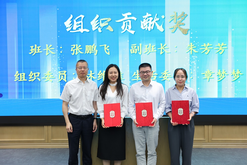 在表彰环节中,温州市工商联党组成员、副主席陆千帆分别向获得“勤学先锋奖”“组织贡献奖”的学员颁发了荣誉证书及奖品,壹号娱乐-com国际商学院(筹)常务副院长叶建亮授予全体学员结业证书。