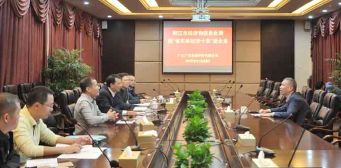 为响应广东省政府、省经信委关于进一步做好《广东省降低制造业企业成本支持实体经济发展的若干政策措施》(简称《实体经济十条》)的宣传贯彻工作要求,主动为企业送政策上门,做好政策解读和服务,力争使政策措施尽快转化为企业发展的红利,11月22日下午,阳江市经信局局长雷双富率队走进广东广青金属科技有限公司送政策,围绕《实体经济十条》的宣传贯彻工作开展了政策宣讲座谈会,并下发了《实体经济十条》解读的宣传手册。公司副总经理李积强参加了座谈会。