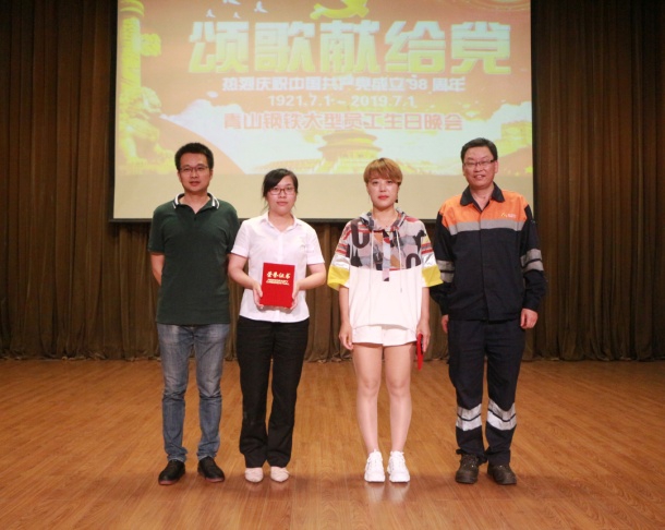 姜文宝首先致辞,他向各位寿星表示诚挚的祝福,并祝愿祖国更加繁荣富强。在党的98岁生日来临之际,借着公司这个特殊的舞台,员工纷纷以歌舞、朗诵等方式表达对党的祝愿及对同事的祝福。装备部欧阳昆塔演唱的《相信自己》拉开了晚会表演的帷幕,安环部、采购部员工朗诵的《七一献诗》更是点燃了整个晚会的现场气氛,行政人事部邓远兵演唱的《乌苏里船歌》让现场不少观众表示“开口跪”,手语舞《感恩的心》、合唱《大中国》、歌伴舞《我爱你中国》等节目让人应不暇接,现场掌声不断。由公司领导组成的评委组为各个节目评分,最终行政人事部的歌伴舞《我爱你中国》获得一等奖,独唱《龙的传人》、《乌苏里船歌》获得二等奖,手语舞《感恩的心》、朗诵《七一献诗》、独唱《青藏高原》获得三等奖,晚会表演结束后公司领导为获奖人员颁发了证书及奖励。晚会期间穿插的抽奖环节给幸运儿带来了冰箱、电饭煲、电风扇、夏凉被等实用的奖品。20时30分,晚会落下帷幕,公司为所有寿星分发了精美的生日礼物和蛋糕。