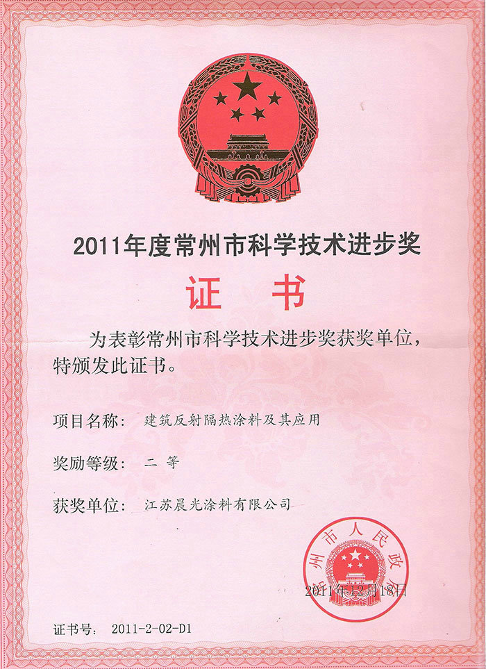 反射隔热涂料市科技进步二等奖