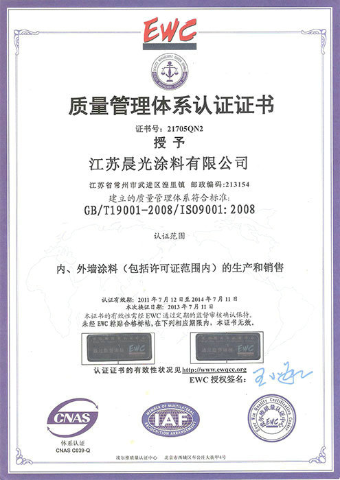 质量管理体系认证证书